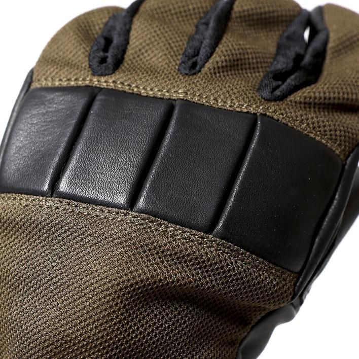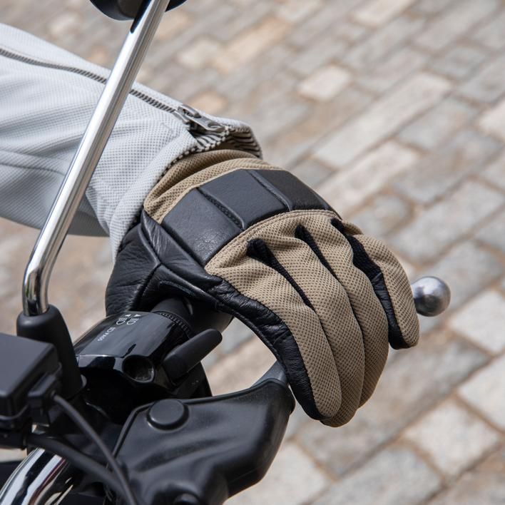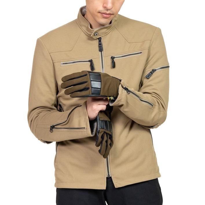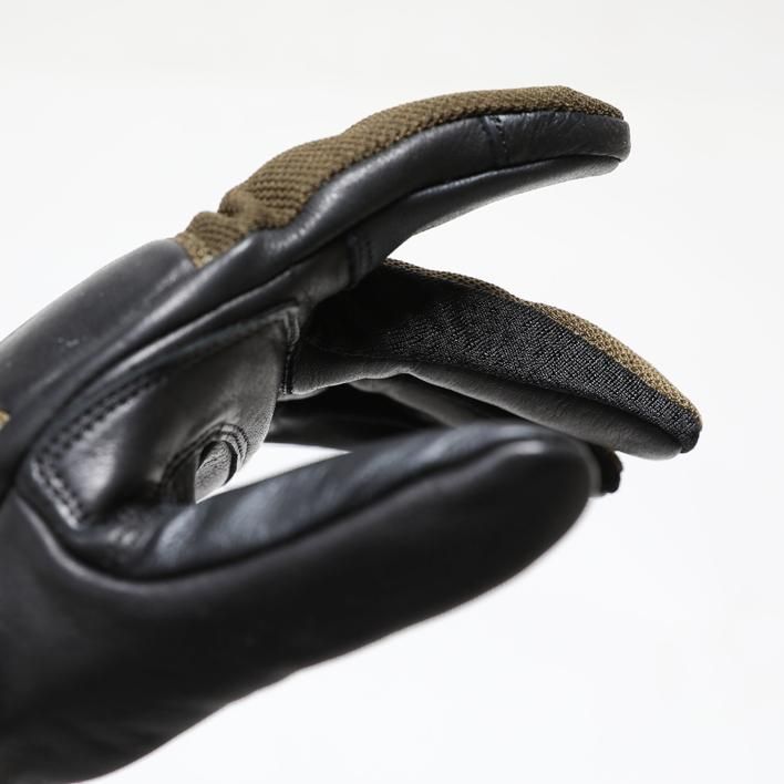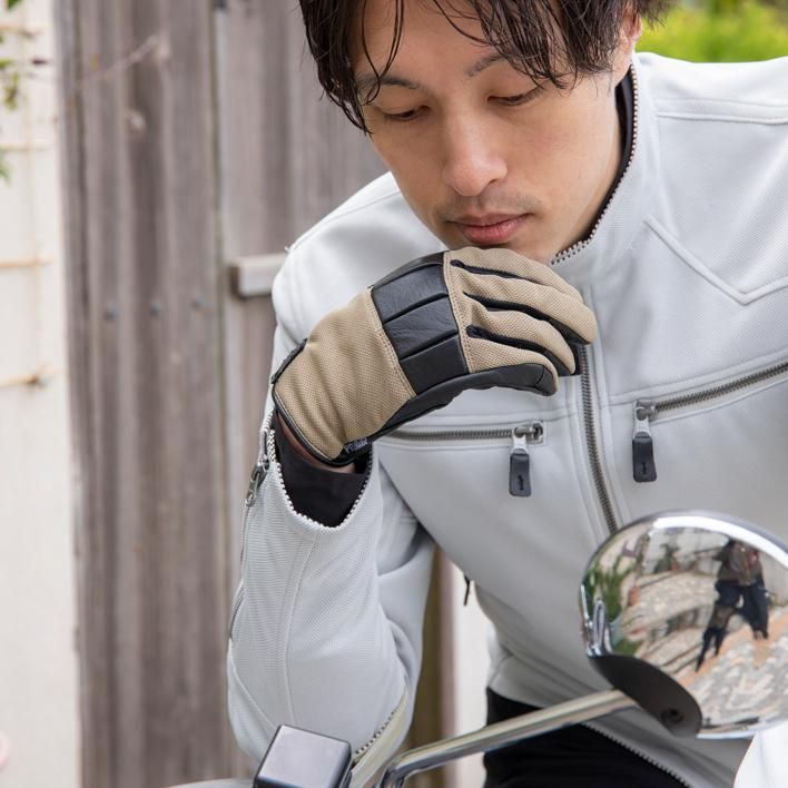 軽くやわらかなはめ心地と、圧倒的な風抜けが自慢のグローブ。甲側と指の股に抜群の通気性を誇るマットな質感のメッシュ素材、掌側は牛革を用い、吸い付くようなグリップ感を実現しました。POWERAGE独自のバイク専用立体構造で、カジュアルな見た目からは想像つかない抜群のフィット感。グリップに手を添えればわずかな力で自然と握りこめ、長時間のライディングでもストレスフリーです。ナックル、掌側手首付け根に衝撃吸収素材「PORON®XRD®」を内蔵。ナックルは従来の1.5倍の厚さ3mmを採用したハイプロテクションモデル。スマートフォン操作にも対応しています。