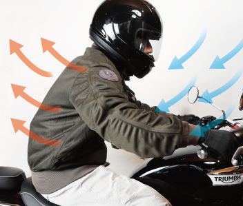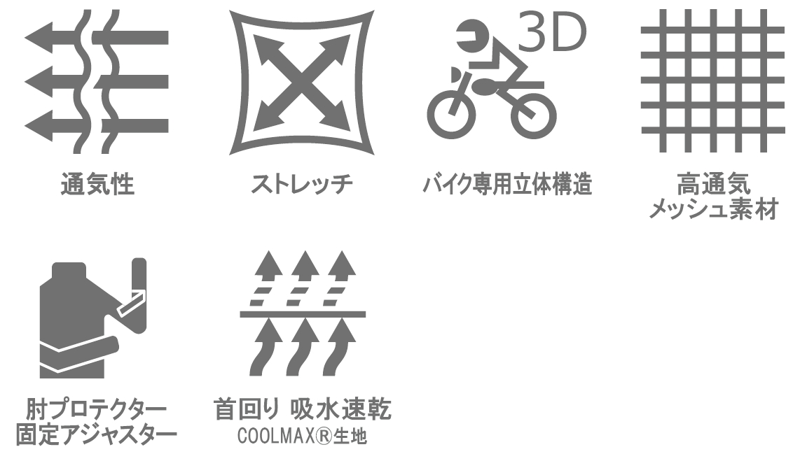夏の定番、風抜け抜群のメッシュ素材を使用したMA-1スタイルのジャケット。首回りには吸水速乾性に優れたCOOLMAX®生地を採用し、暑い日のライディングを快適にサポート。バイク専用の立体構造に加え、腕部分にゴムを配することで、乗車姿勢でも腕が突っ張らず、快適な運動性を確保。軽量で通気性に優れた設計により、風を切る爽快感を体感できます。タフなライディングを支える夏の一着です。